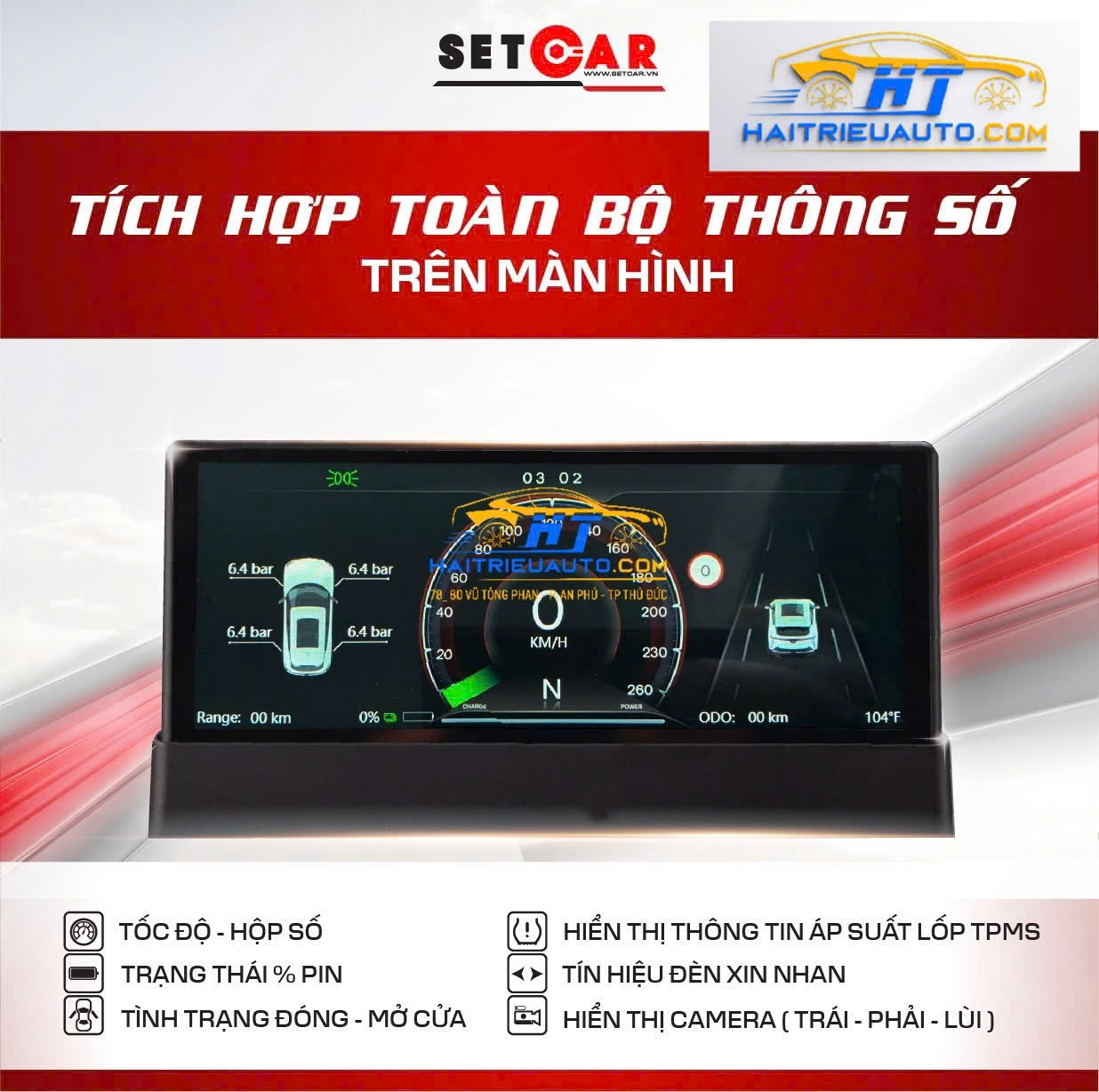 ✅ Hiển thị thông tin xe: Tốc độ, hộp số, phần trăm pin, nhiệt độ pin